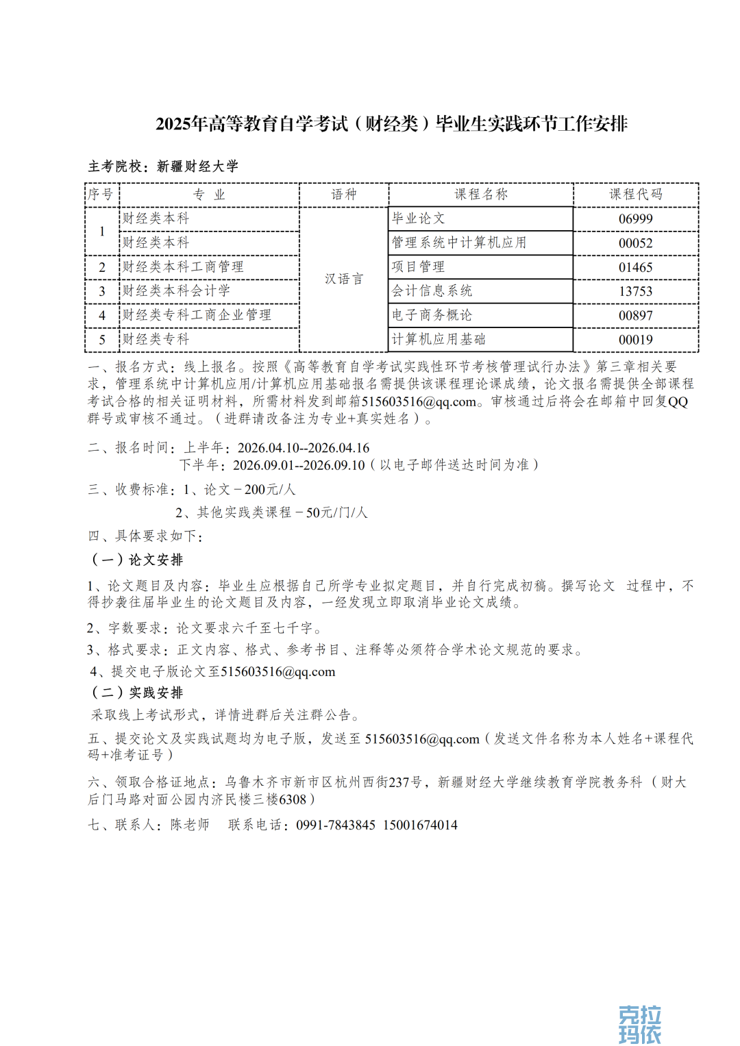 2026年自学考试各主考院校实践性环节考核的通知