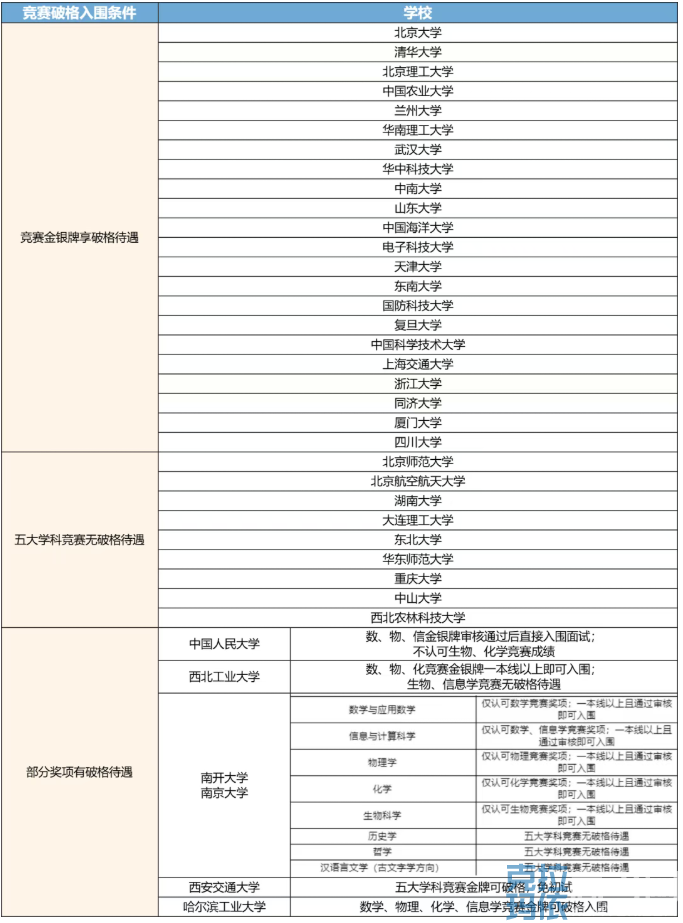 首先说一说大家最关心的竞赛奖项破格问题,往年所有高校都是金银牌破格入围,2025年很多高校都做出了调整。2025年北航、湖南大学等9所高校不再对五大学科竞赛金银牌破格入围,还有20几所高校依旧保留了竞赛奖项破格,不过也有部分高校则是根据所招专业对竞赛学科做出了要求。看似变动很大,但其实竞赛生并没有想象中受冲击大,首先是学校的选择上其实还是有很大的范围,其次虽然取消了破格,实际上在校测考试上,竞赛生的优势还是不言而喻的,最终录取要看高考成绩和校测成绩的综合,破格多数情况下减少的只是校测笔试。看清了这些,大家其实能安心很多。2024年开始,包括北京理工大学、南开大学、大连理工大学、哈尔滨工业大学、华东师范大学和华南理工大学等多所高校采取了单科加权分数入围,即对一些重点科目加权计算,因此这些科目的入围成绩会远高于实际的高考成绩,入围成绩总分也就会高于高考成绩总分。各高校通常会在数学、物理、化学、生物、语文等核心重点科目设置加权系数,加权系数从1.2-1.5不等,非常适合竞赛生/数学等单科成绩优异的考生。对于理工类高校而言,高考数学的成绩是区分度高的一个高考科目。给数学科目加权,可能是未来理工类高校强基计划的趋势。低年级考生家长需重点关注数学成绩的提高。2023年教育部发布《教育部关于做好2023年普通高校招生工作的通知》,重点对强基面试提出新要求,“要优化学校考核内容和形式,积极在面试中参考使用学生综合素质档案着重考查学生的理想信念、兴趣特长、思维能力和创新潜质等”。